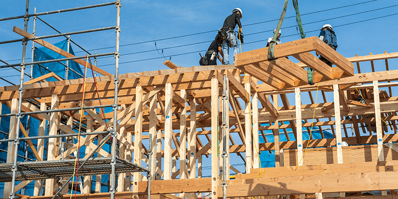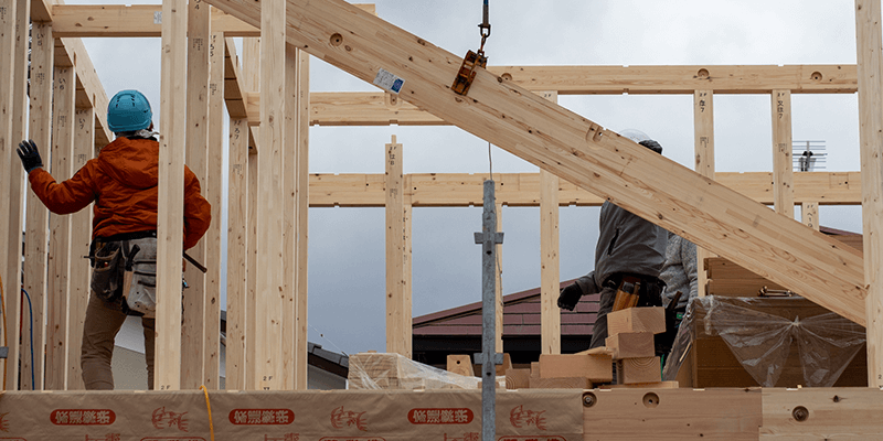 木造住宅において、柱や梁、棟木を組み立てながら、建物のカタチを建設する工事です。